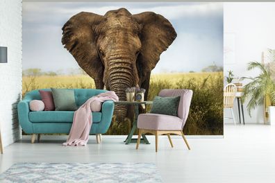 Fototapete - 330x220 cm - Weidender Elefant in der Natur Afrikas (Gr. 330x220 cm)