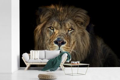 • Fototapete - 330x220 cm - Schwarz - Löwe - Wildtiere (Gr. 330x220 cm)