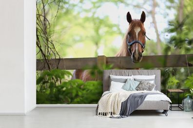 • Fototapete - 330x220 cm - Pferd - Natur - Zaun (Gr. 330x220 cm)