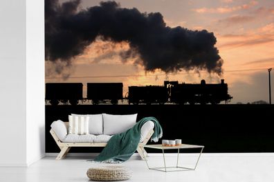 • Fototapete - 330x220 cm - Eine Dampflokomotive bei Sonnenuntergang (Gr. 330x220 cm)