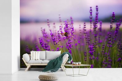 • Fototapete - 330x220 cm - Lavendel mit Biene (Gr. 330x220 cm)
