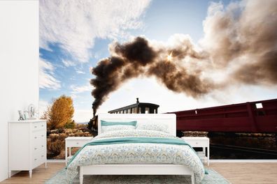 • Fototapete - 330x220 cm - Viel Dampf über der Dampflokomotive (Gr. 330x220 cm)