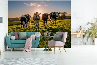 • Fototapete - 350x260 cm - Kühe - Sonne - Gras (Gr. 350x260 cm)