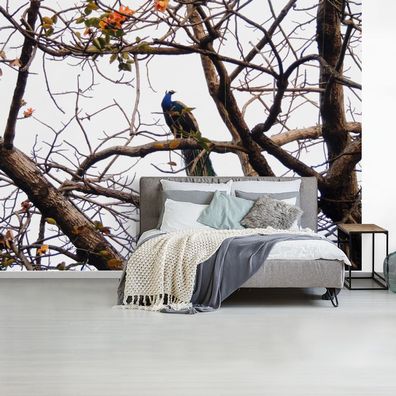 • Fototapete - 350x260 cm - Indischer Pfau auf einem Baum (Gr. 350x260 cm)