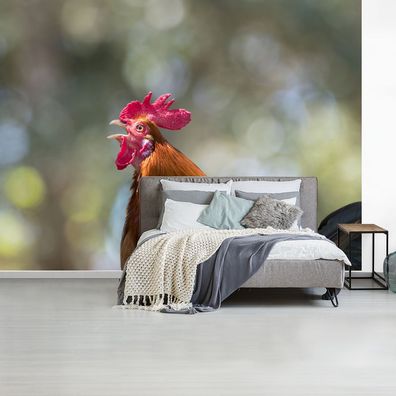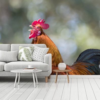 • Fototapete - 350x260 cm - Krähender Braunhahn (Gr. 350x260 cm)