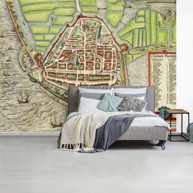 • Fototapete - 350x260 cm - Stadtplan - Stavoren - Vintage (Gr. 350x260 cm)