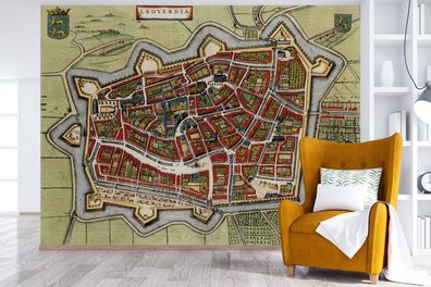 • Fototapete - 350x260 cm - Karte - Leeuwarden - Farben (Gr. 350x260 cm)