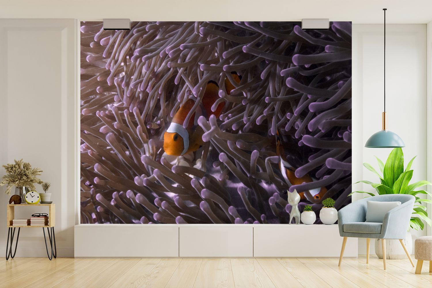 Fototapete - 375x280 cm - Clownfisch versteckt zwischen den Seeanemonen