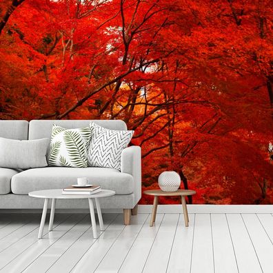 • Fototapete - 375x280 cm - Herbst - Wald - Rot (Gr. 375x280 cm)