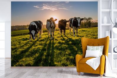 • Fototapete - 375x280 cm - Kuh - Gras - Sonne (Gr. 375x280 cm)