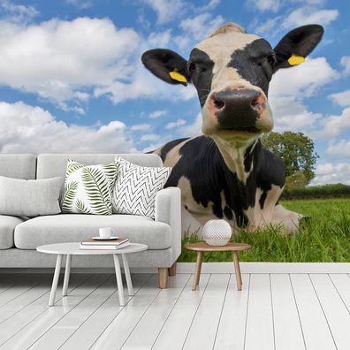 • Fototapete - 375x280 cm - Kuh - Gras - Himmel (Gr. 375x280 cm)
