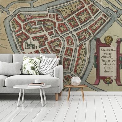 • Fototapete - 375x280 cm - Karte - Sneek - Historisch (Gr. 375x280 cm)
