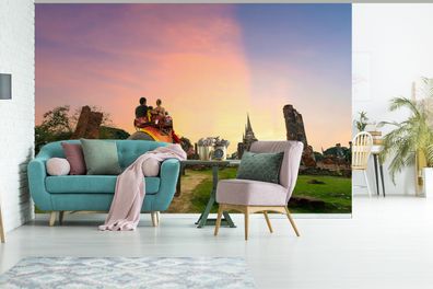 • Fototapete - 390x260 cm - Reiten auf einem Elefanten (Gr. 390x260 cm)