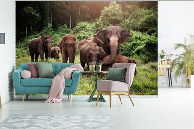• Fototapete - 390x260 cm - Elefanten aus dem Wald (Gr. 390x260 cm)