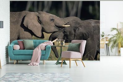 • Fototapete - 390x260 cm - Spielende Elefanten (Gr. 390x260 cm)