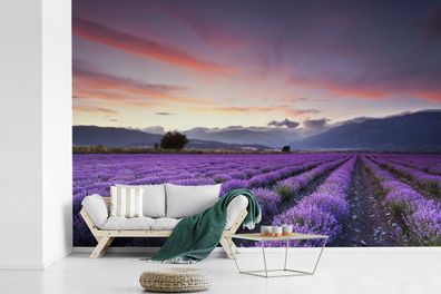 • Fototapete - 390x260 cm - Sonnenuntergang über Lavendel (Gr. 390x260 cm)