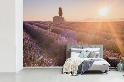 • Fototapete - 390x260 cm - Sonnenaufgang über einem Lavendelfeld (Gr. 390x260 cm)