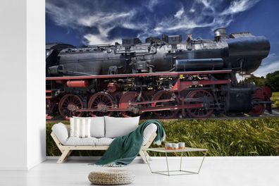 • Fototapete - 390x260 cm - Dampflokomotive auf einem Feld (Gr. 390x260 cm)