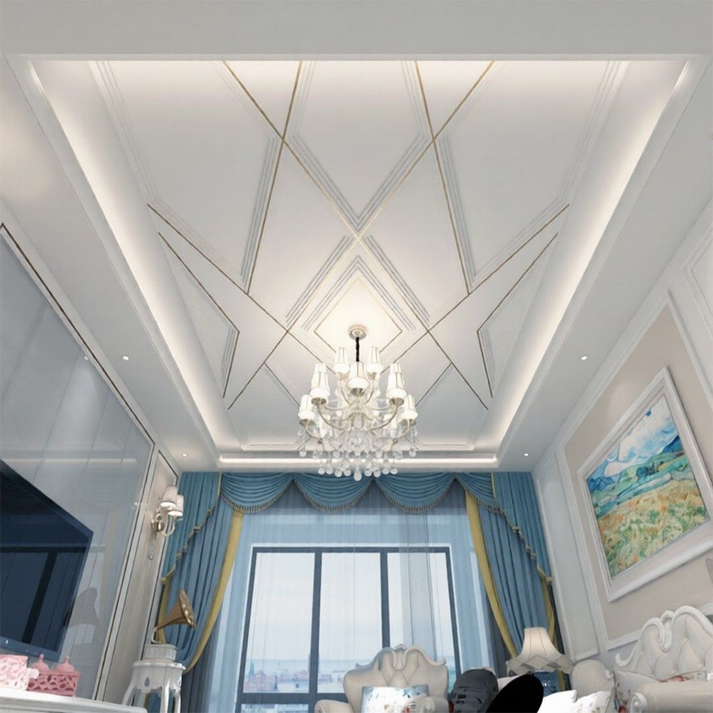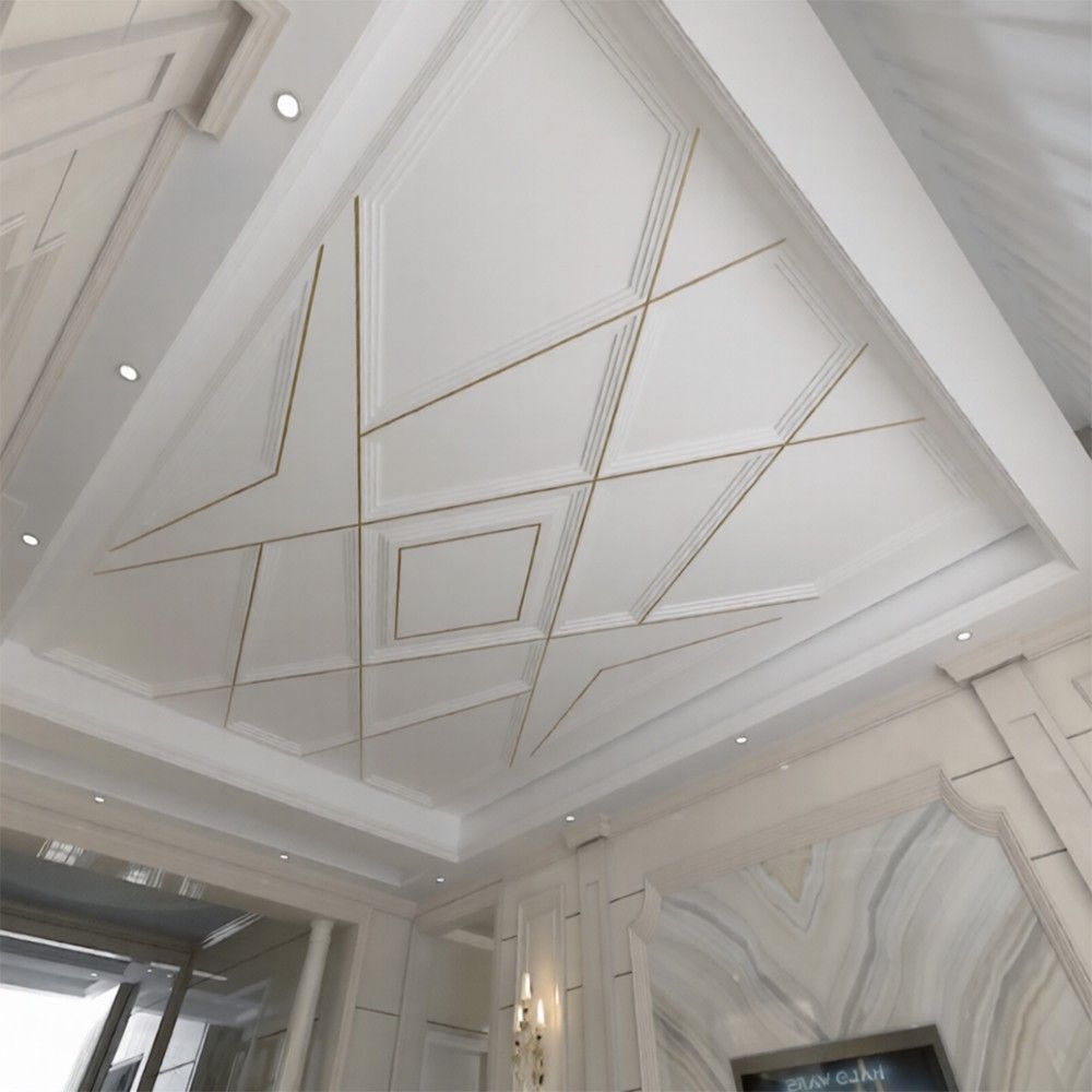 Fototapete 3D Deckenoptik Gips Linien Wandbild Modern Wohnzimmer Tapete 6087