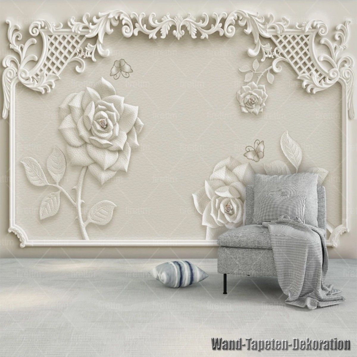 Fototapete 3D Säulen Blumen Relief Wandbild Wohnzimmer Vlies Tapete 9395