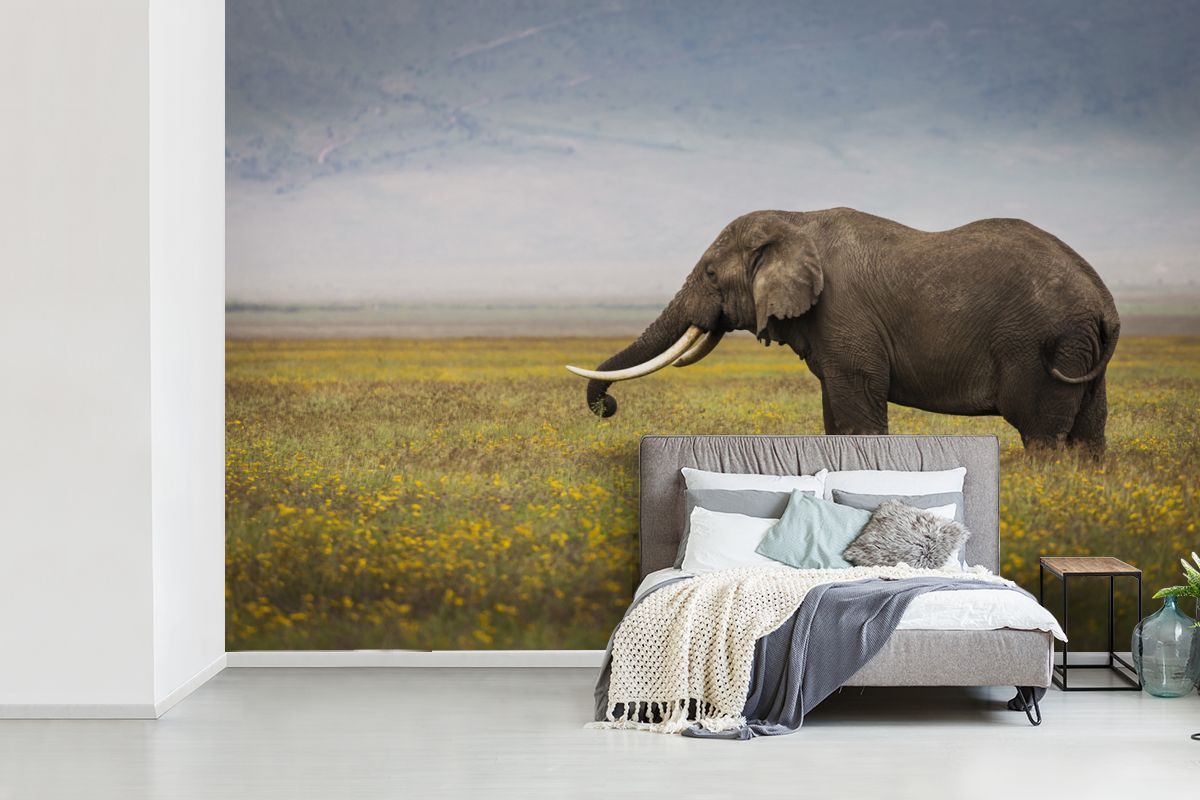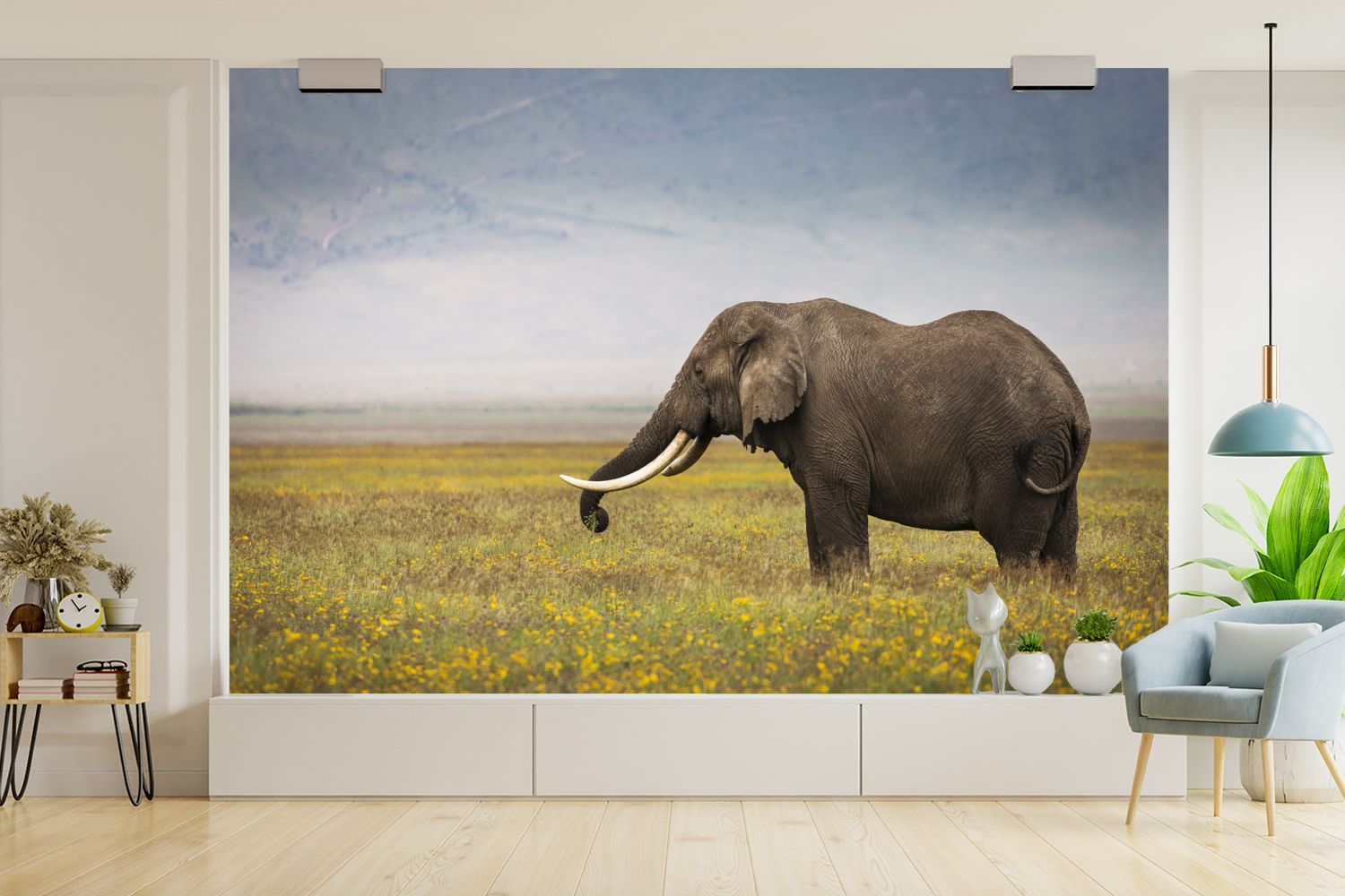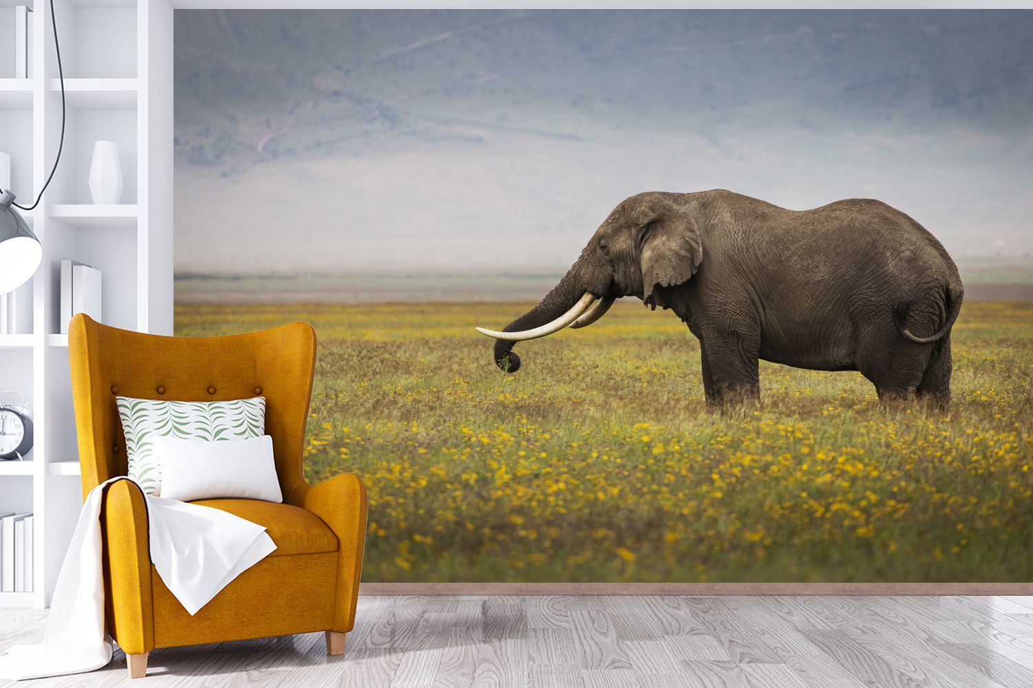 Fototapete - 600x400 cm - Weidender Elefant in der Natur Afrikas (Gr. 600x400 cm)