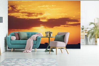 • Fototapete - 600x400 cm - Elefantenherde bei Sonnenuntergang (Gr. 600x400 cm)