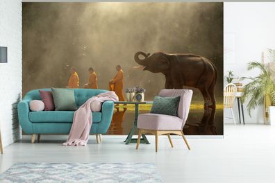 • Fototapete - 600x400 cm - Elefant mit Mönchen (Gr. 600x400 cm)