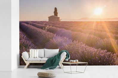 • Fototapete - 600x400 cm - Sonnenaufgang über einem Lavendelfeld (Gr. 600x400 cm)