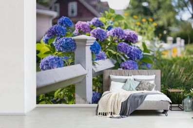 • Fototapete - 600x400 cm - Lattenzaun mit Hortensien (Gr. 600x400 cm)