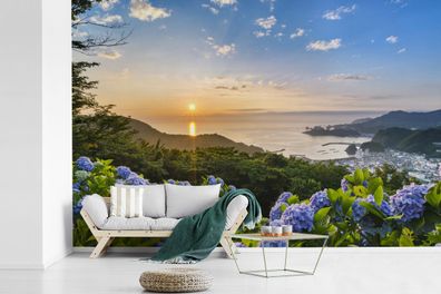 • Fototapete - 600x400 cm - Meerblick und Hortensien (Gr. 600x400 cm)