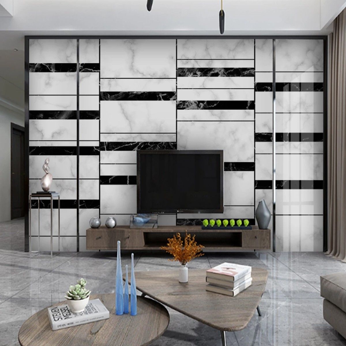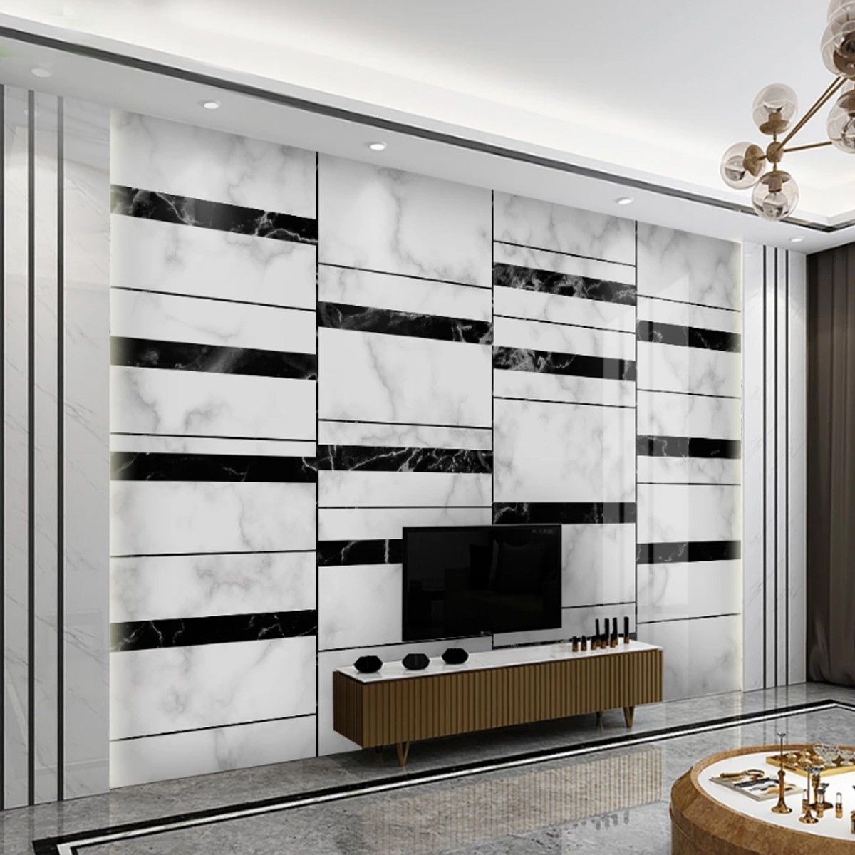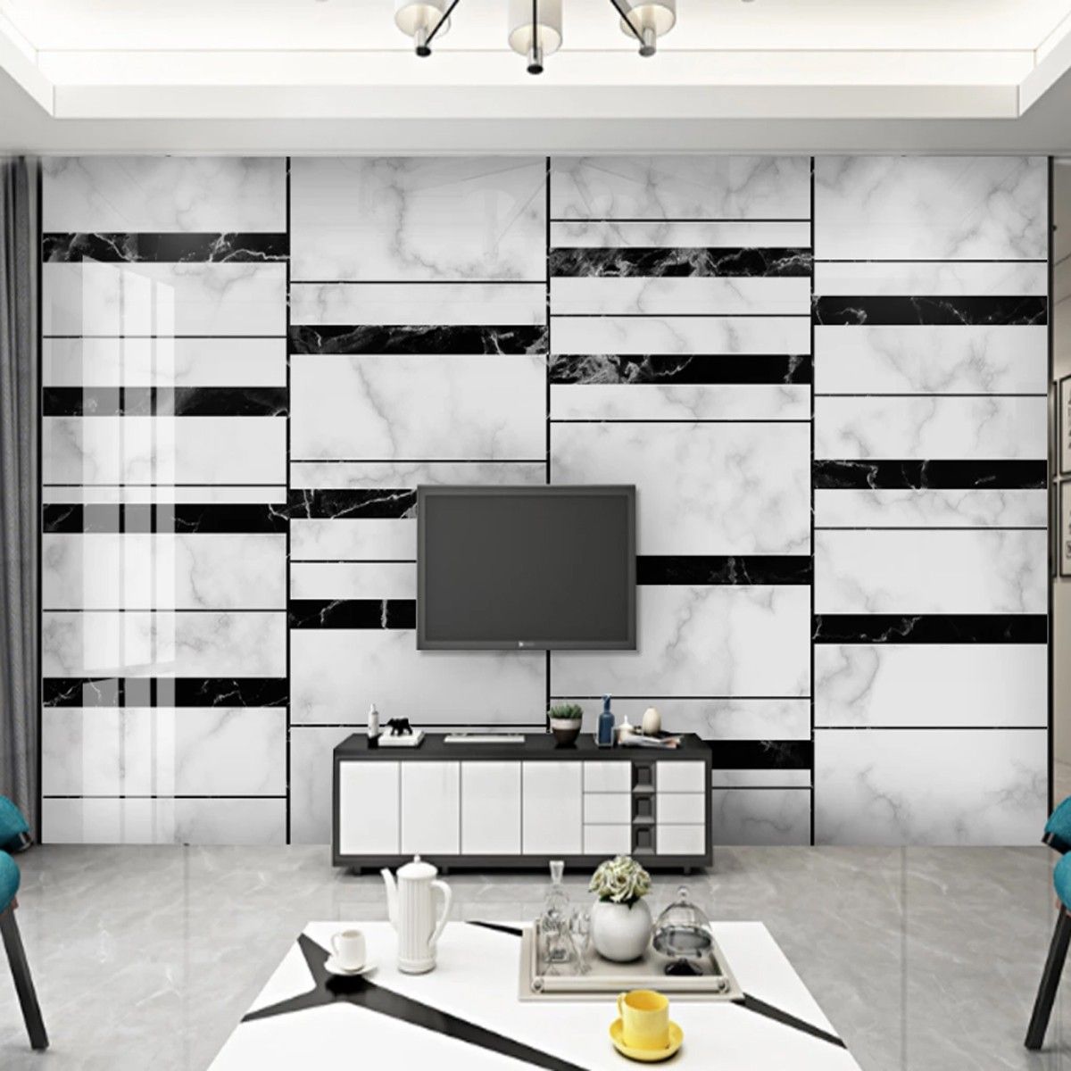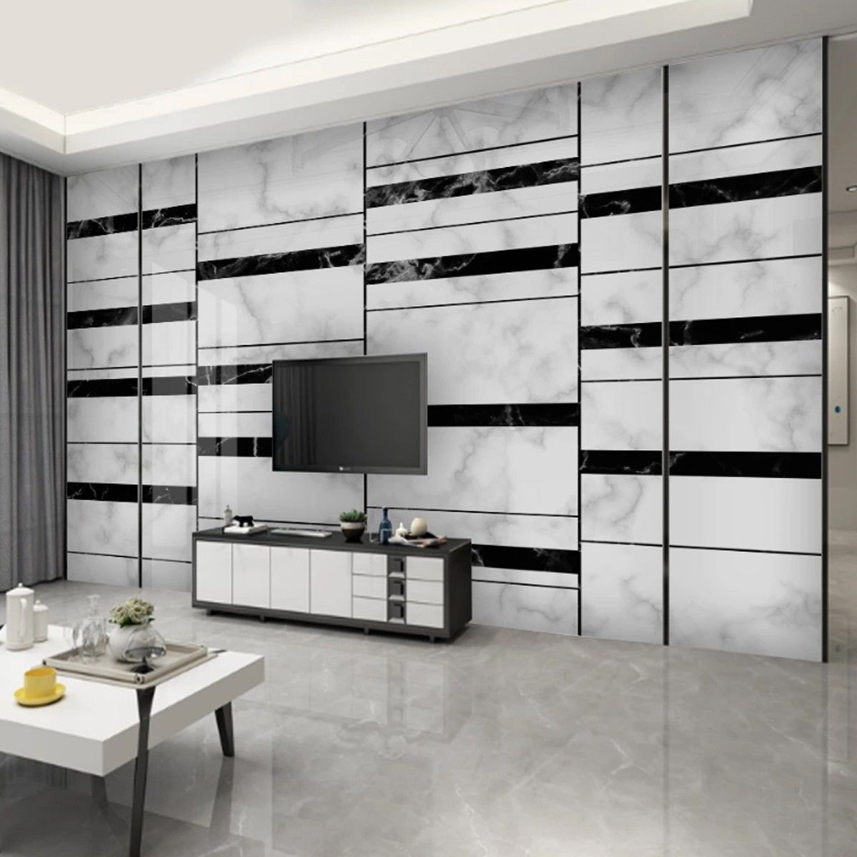 Fototapete Abstrakte - Geometrische Linien Schwarz Weiß Marmor 10467