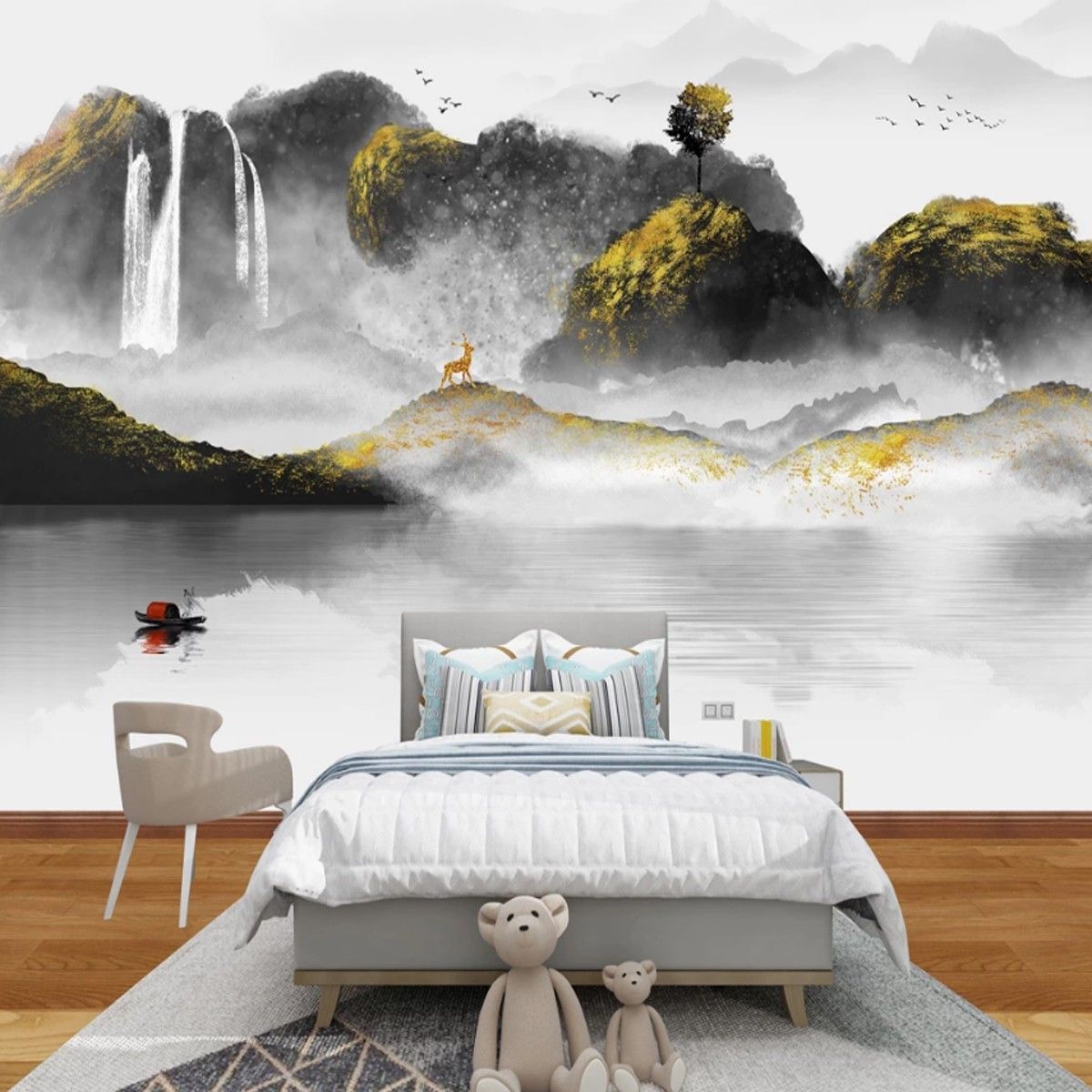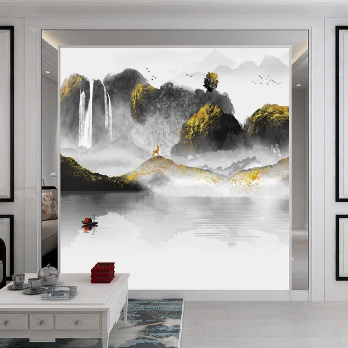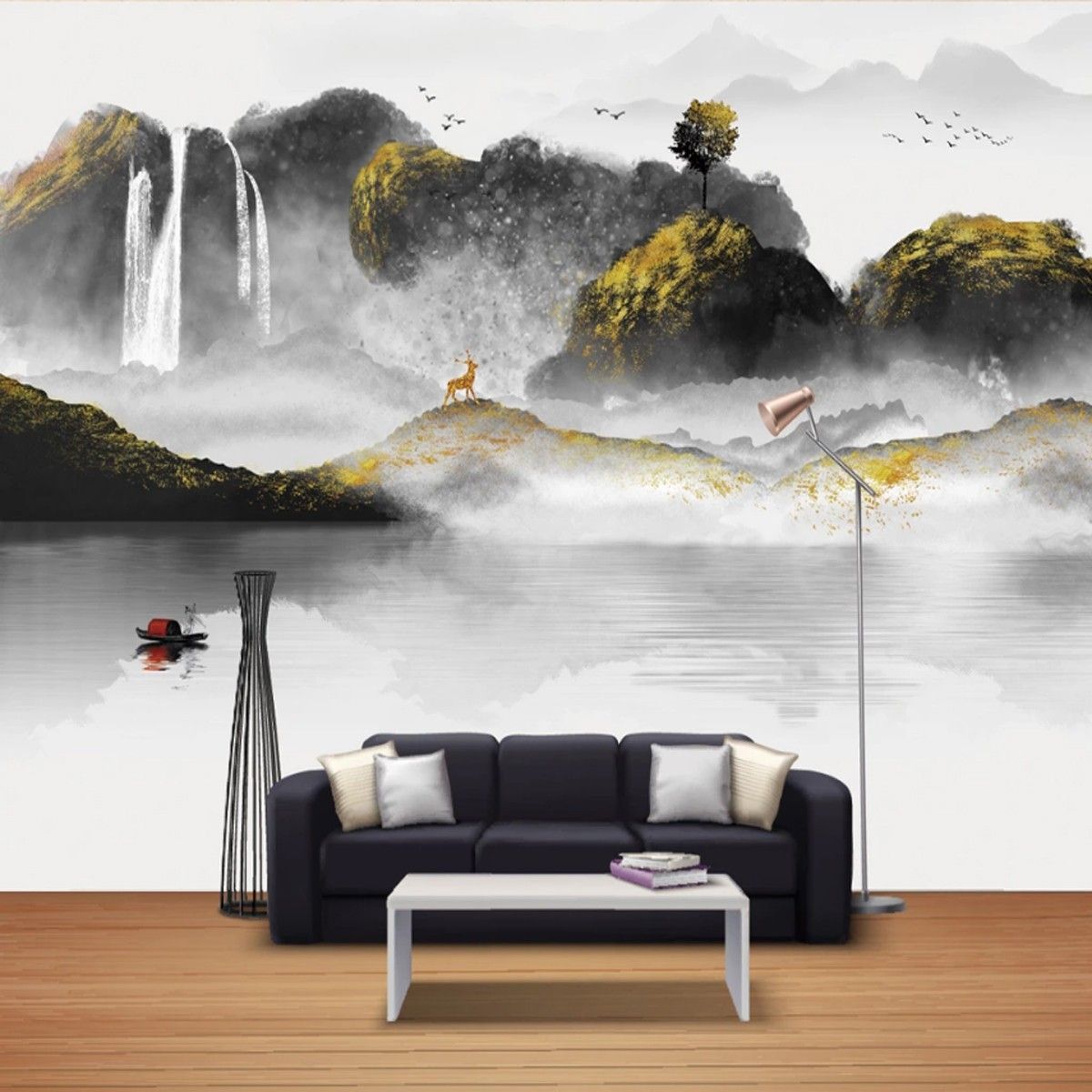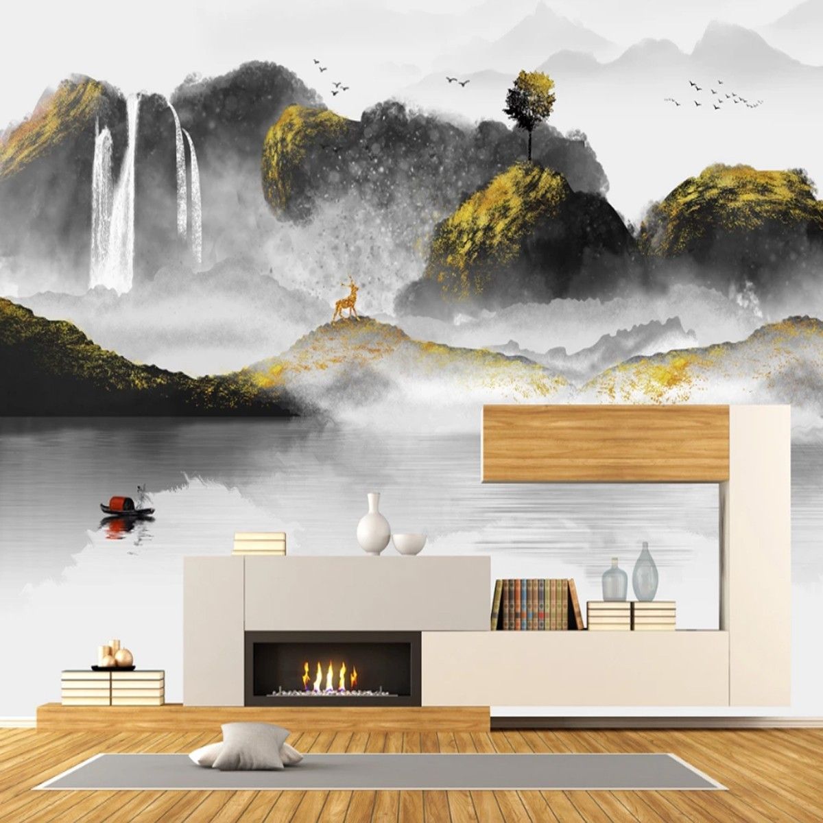 Fototapete Asiatische Gold Landschaft Wanddeko Wohnzimmer Schlafzimmer 10365