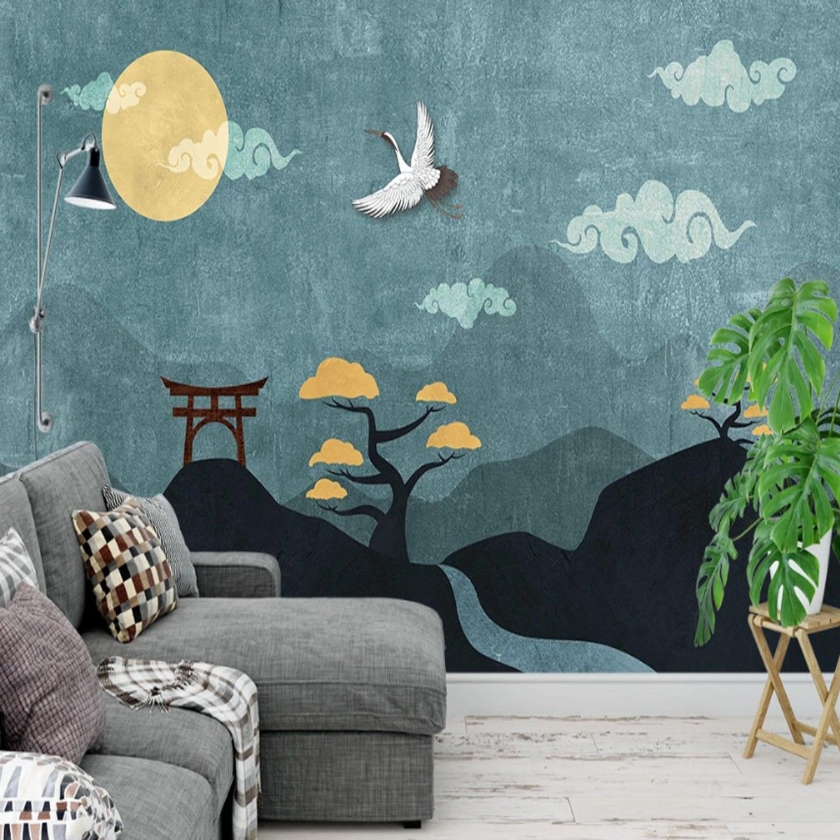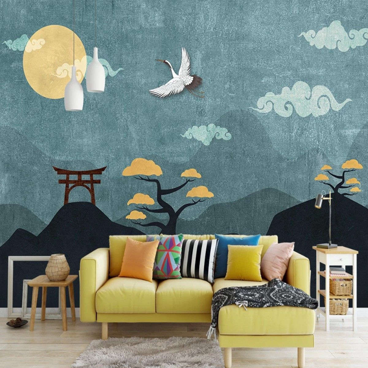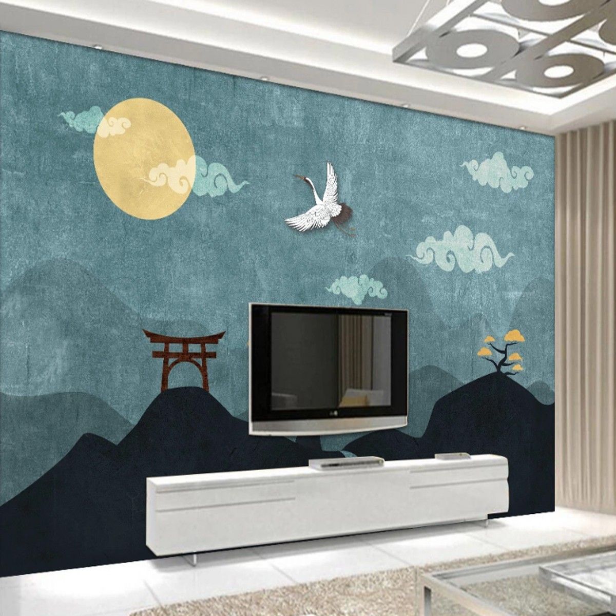 Fototapete Asiatische Natur Kraniche & Wolken Wanddeko Schlafzimmer Wohnzimmer 10372