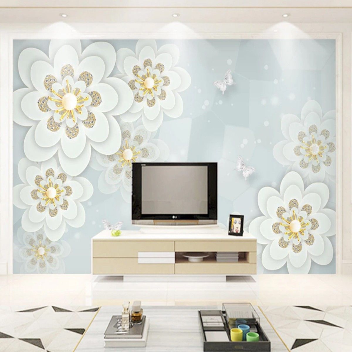Vlies Fototapete Blumen Weiß GelbTAPETE XXL Wohnzimmer Schlafzimmer