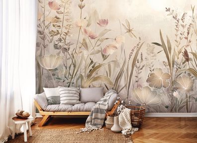 Fototapete Blumen Wanddeko Wohnzimmer Schlafzimmer Nordisch Vintage Stil 10402