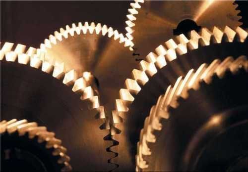 Fototapete Energie 372x270 Vliestapete Zoom Coll. Messing Zahnräder Kraft Gold