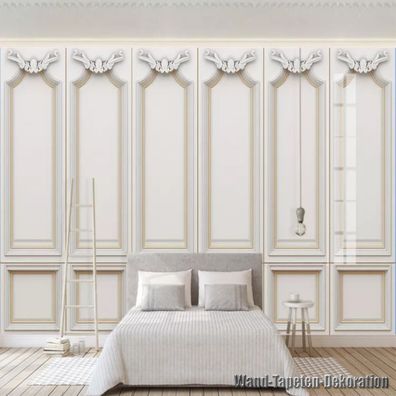 • Vlies Fototapete Wandtapete Wandbilder Weiße Gipslinie im Europäischen Stil 9084