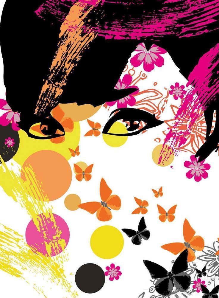 Fototapete FLORAL GIRL 183x254 Kunstgrafik Blumen + Schmetterlinge Frauengesicht