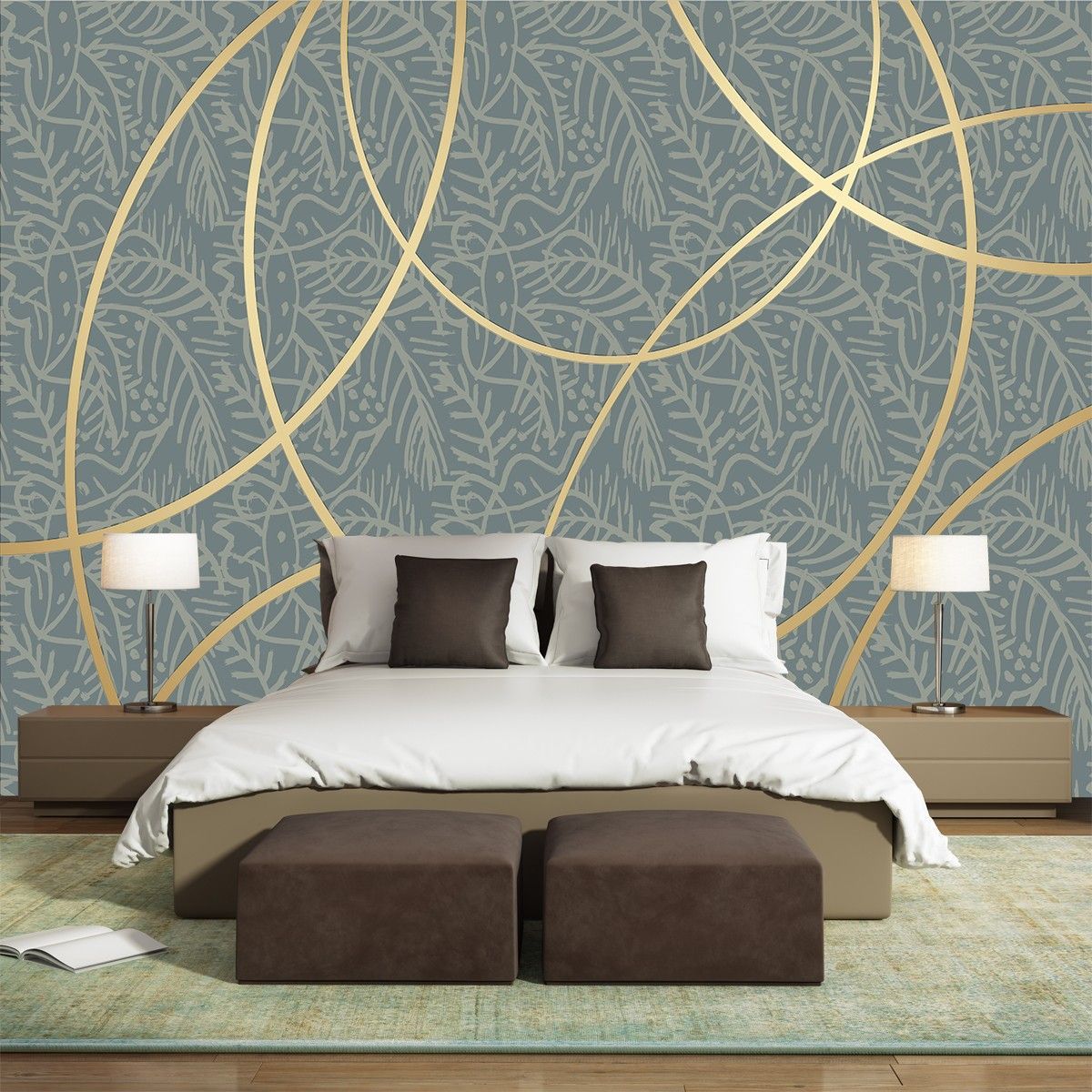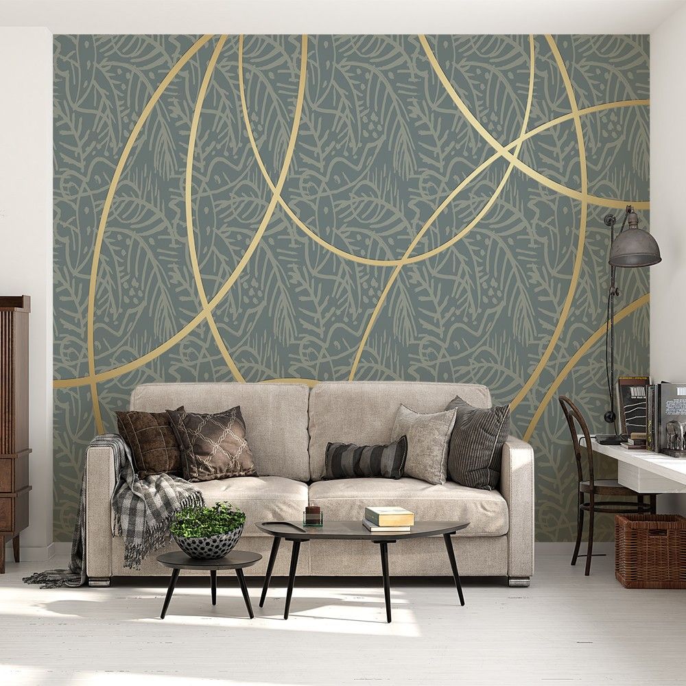 Fototapete Geometrische Blätter Modern Wandtapete Wohnzimmer Deko 7480