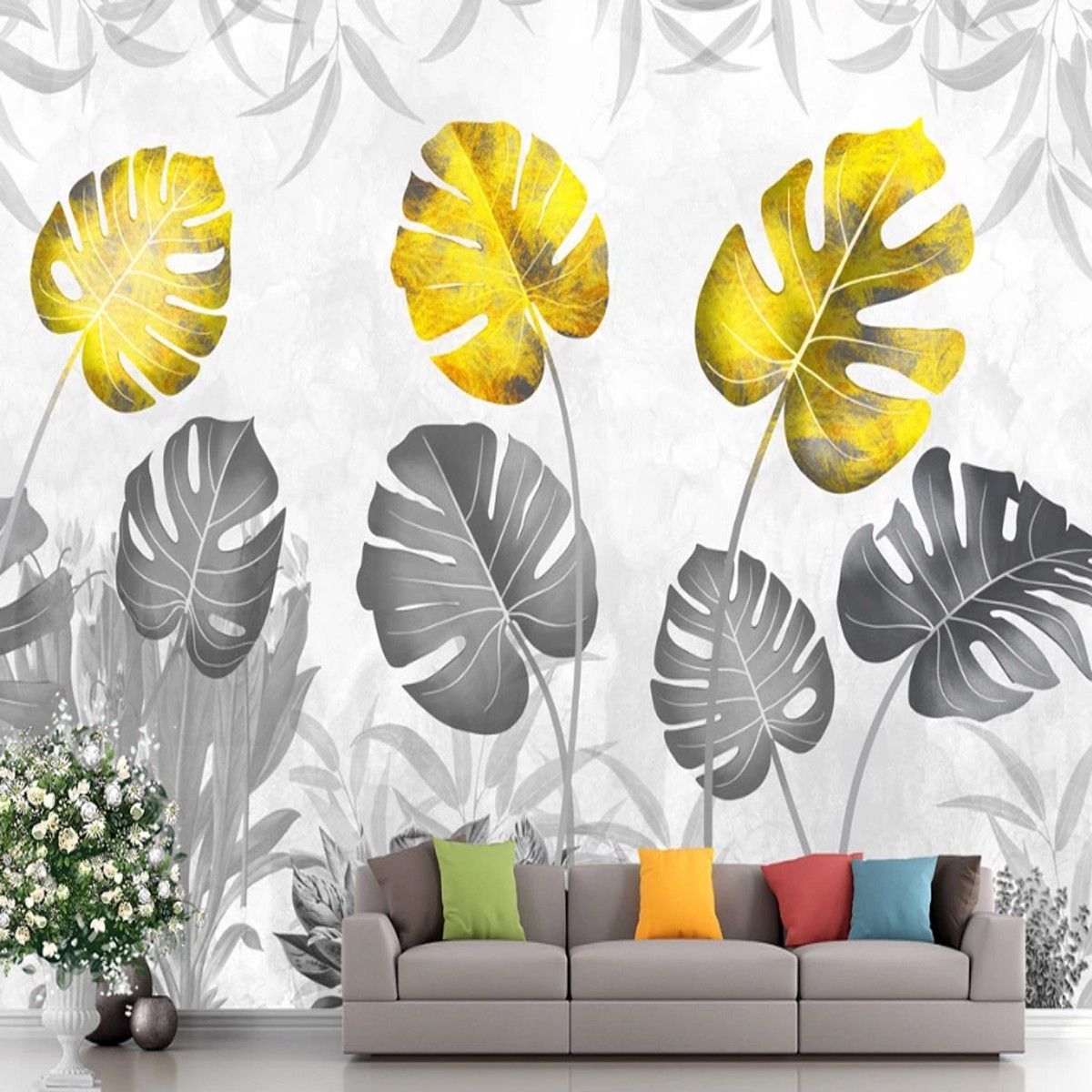Fototapete Gold Pflanzen Wanddeko Nordisch Wohnzimmer Schlafzimmer 10361