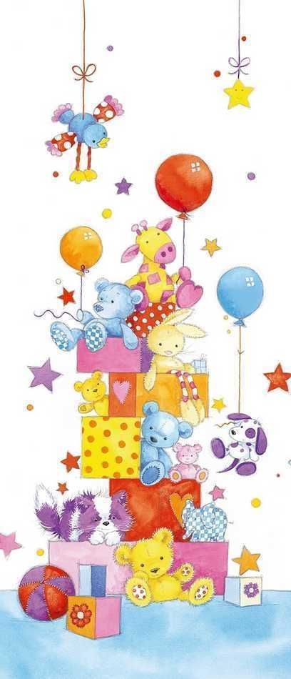 Fototapete LITTLE Friends 86x200 lustige Kindertapete Cartoon Comic Tiere Ballon