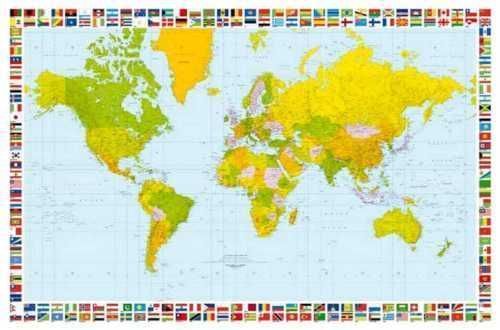 Fototapete MAP WORLD 175x115 Weltkarte Grenzen Flaggen Landkarte XXL-Poster Geo