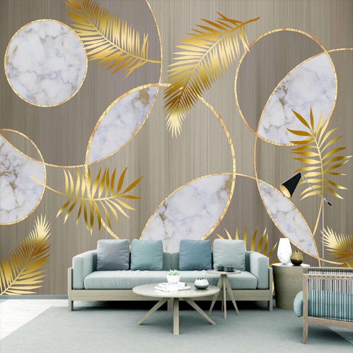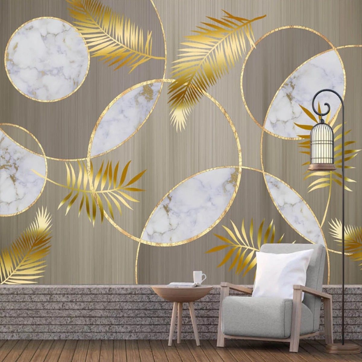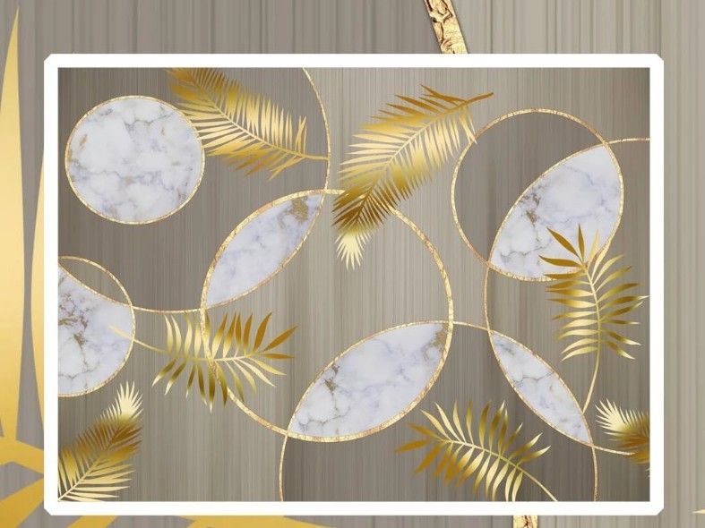Fototapete Nordic Holz & Marmor Gold Blatt Wandbild - Vlies Tapete 10317