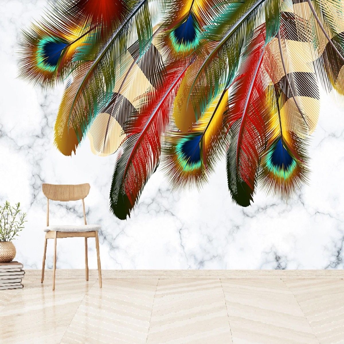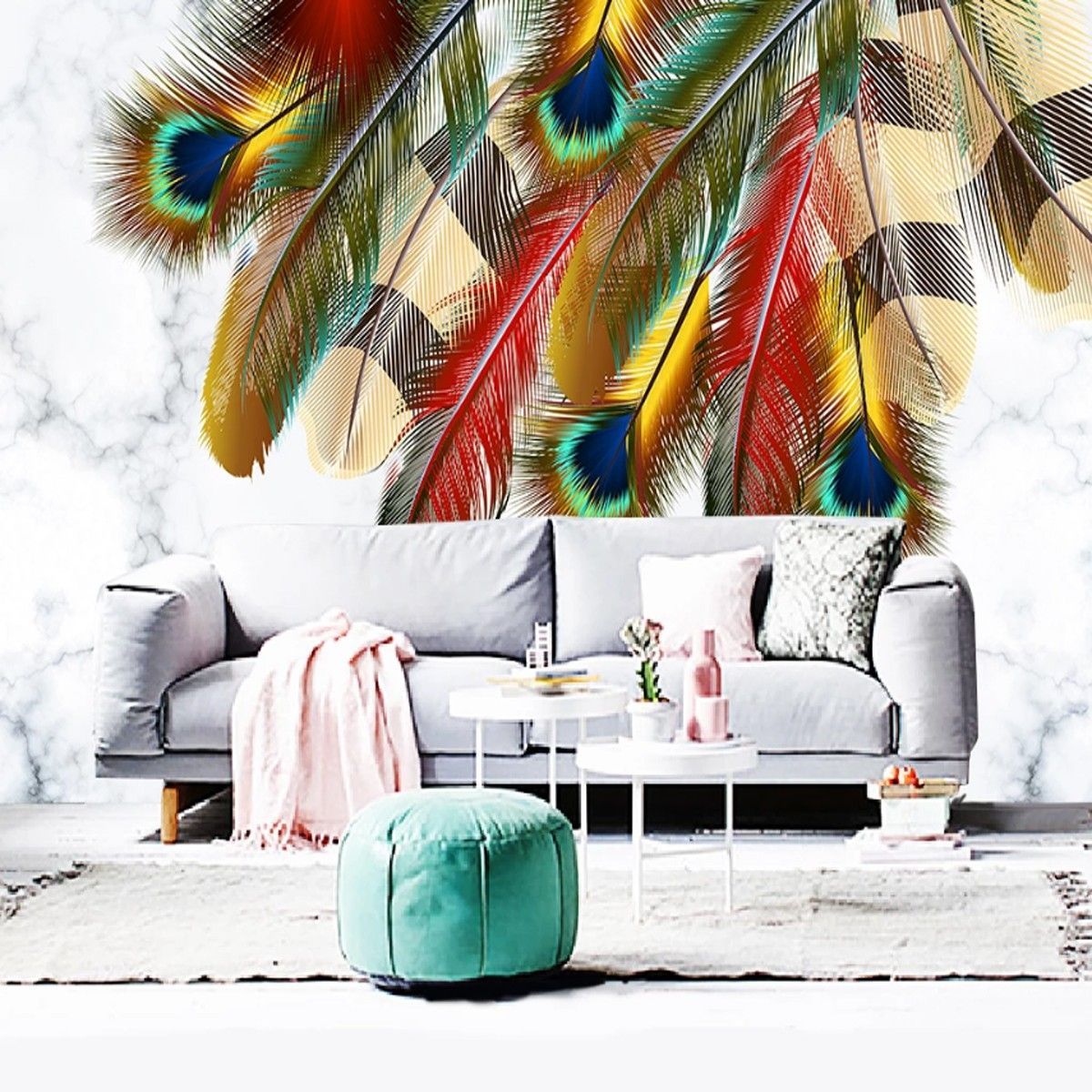• Muralo Vlies Selbstklebende Fototapete bunte Federn Abstraktion für Wohnzimmer