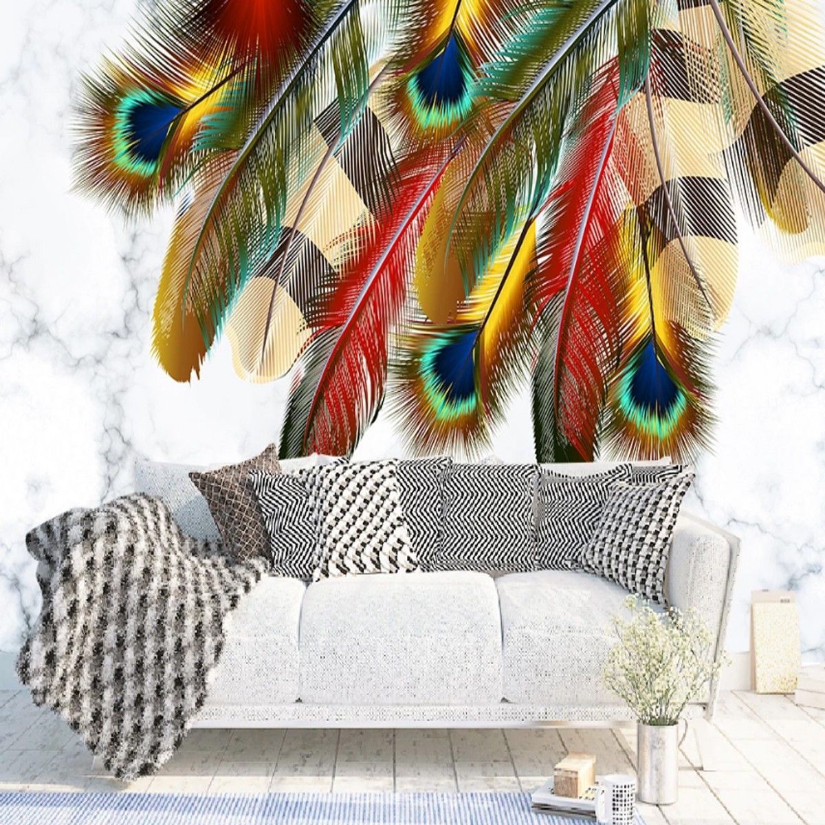 • Muralo VLIES Fototapeten Tapeten XXL Wand Bunte Federn 3D Dekor 4703