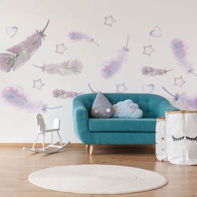 • Muralo VLIES Fototapeten Tapeten XXL Aquarell Federn Sterne Herzen 4871