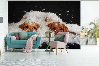 • Fototapete - 450x300 cm - Versteckte Labradore zwischen den Federn (Gr. 450x300 cm)