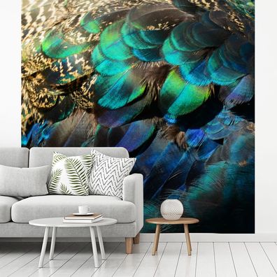 • Fototapete - 350x350 cm - Federn - Pfau (Gr. 350x350 cm)