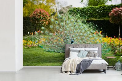 • Fototapete - 360x240 cm - Pfau - Federn - Garten (Gr. 360x240 cm)