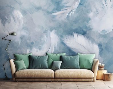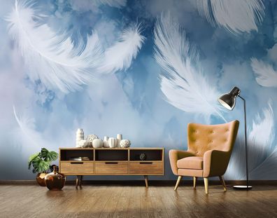 Vlies Fototapete Federn Blau Weiß Daune Himmel TAPETE XXL Wohnzimmer Schlafzimmer